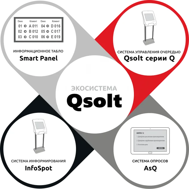 Это современная система сбора информации, обратной связи от клиентов по интересующим заказчика вопросам. Она вполне может быть применима, и сама по себе, но в составе «Экосистемы Qsolt» ее применение может быть наиболее результативным, так как в условиях комфортной атмосферы, человек наиболее расположен уделить пару минут своего ожидания для ответов на несколько вопросов.