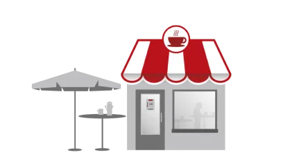 Service in catering establishments, cafes, and canteens that offer takeaway orders.